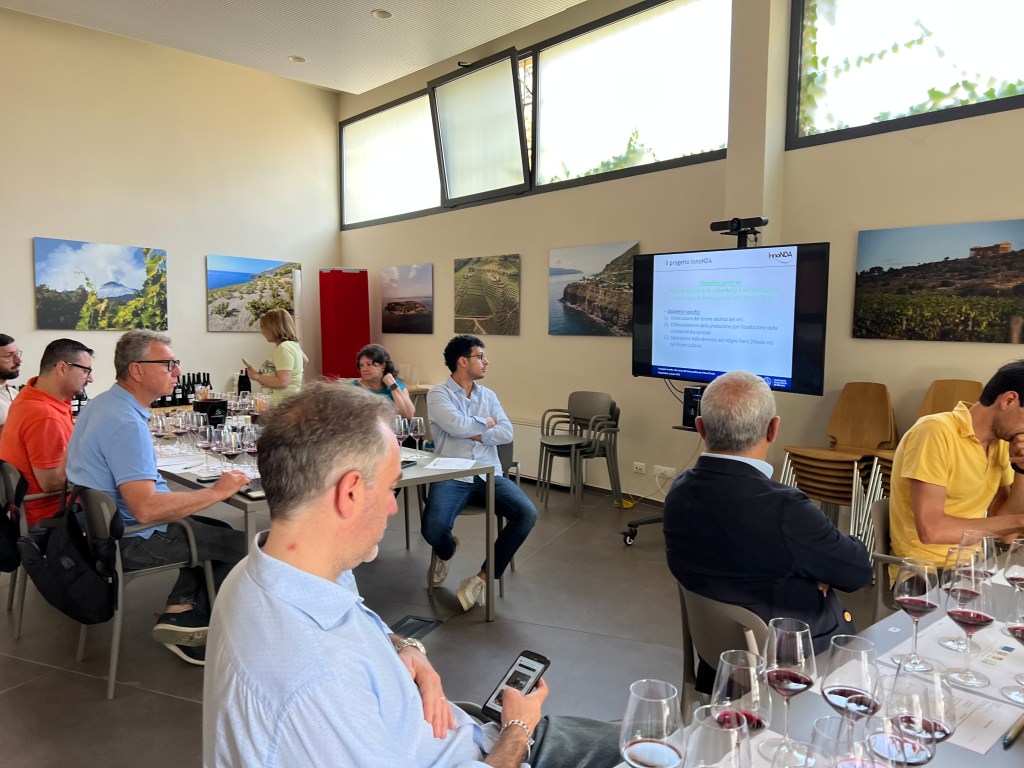 Presentazione dei risultati del progetto InnoNDA. Il programma ha previsto: una conferenza a carattere scientifico, la degustazione di alcuni campioni sperimentali e il dibattito (con FAQ). E’ seguita la visita in cantina e un light lunch per tutti i partecipanti. L’evento è rivolto principalmente ad enologi, agronomi, aziende vinicole, imprenditori del settore e alla stampa specializzata su richiesta.